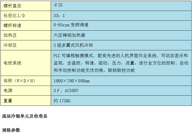 本機(jī)主要由主驅(qū)動電機(jī)、傳動裝置、擠出裝置、加料斗、電控系統(tǒng)、流延模頭、兩輥壓延等組成.